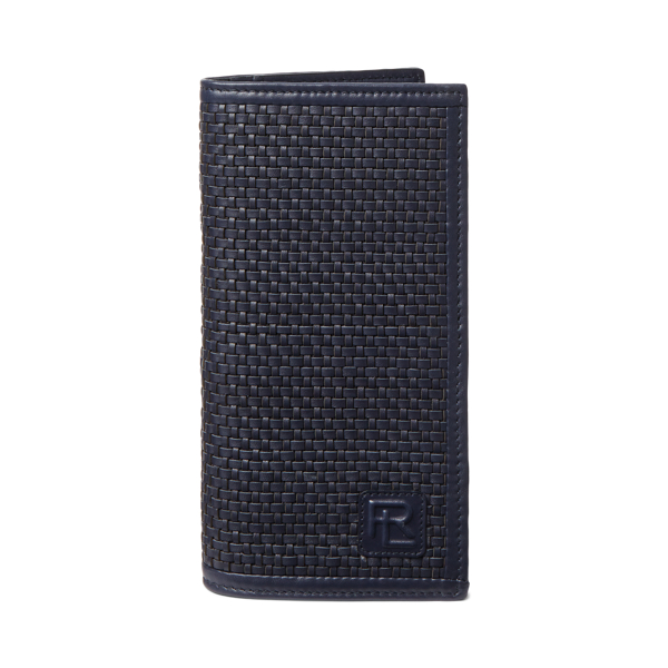 Diese Brieftasche wird aus Kalbsnarbenleder gefertigt, das von italienischen Kunsthandwerkern aufwändig gewebt wurde. Sie ist innen mit Lammleder versehen und auf der Vorderseite mit dem gestapelten „RL“-Logo von Purple Label geprägt.