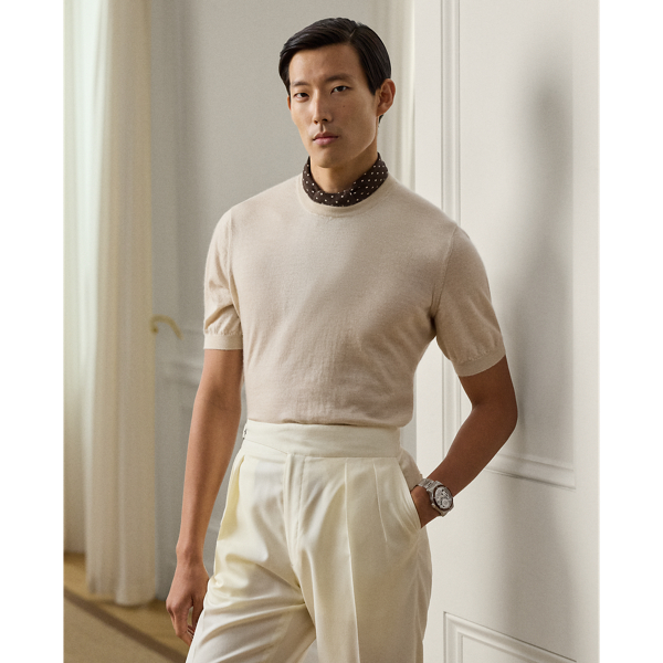 Dieser Pullover interpretiert die zeitlose T-Shirt-Silhouette mit meisterhafter italienischer Handwerkskunst und besonders feinem Gauge-Strick-Kaschmirgarn neu und ist ein Beweis für Ralph Laurens Geschick, Alltagsklassikern eine edle Note zu verleihen.