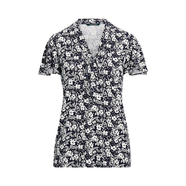 Die elegante Schluppe und die kurzen Schmetterlingsärmel verleihen diesem Top aus weichem Jersey einen romantischen Touch.