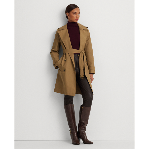 Dieser Mantel aus einer Baumwollmischung mit geknöpften Schulterriegeln, einer zweireihigen Silhouette und einem Taillengürtel bleibt dem klassischen Trenchcoat-Stil treu und ist mit den charakteristischen Knöpfen in Hornoptik mit „Lauren Ralph Lauren“-Gravur versehen. Dieses zeitlose Modell für den Lagenlook ist funktionell und modisch zugleich und verfügt über wasserabweisende Eigenschaften, sodass Sie angenehm trocken bleiben.