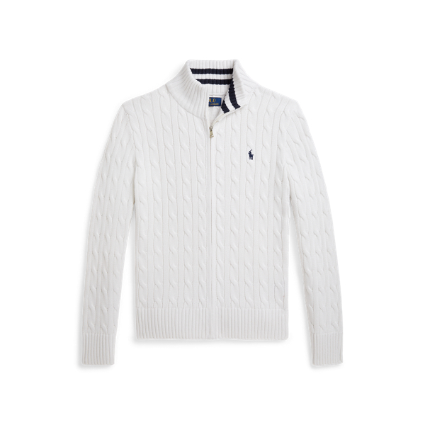 Perfect for when temperatures dip, this full-zip jumper combines our signature cable-knit design with soft combed cotton.