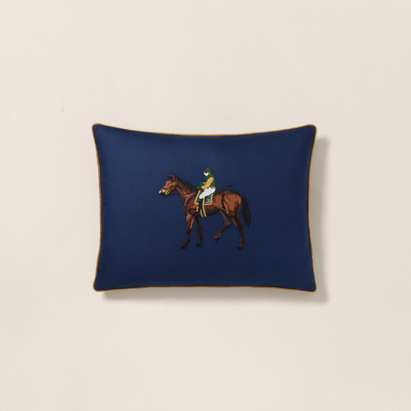 Ralph Lauren's signature equestrian-inspired style defines the Gale throw pillow, which features embroidery on the front depicting a polo player and horse. Woven from a supple cotton-wool blend, it's adorned with twisted gold cording on the edges.