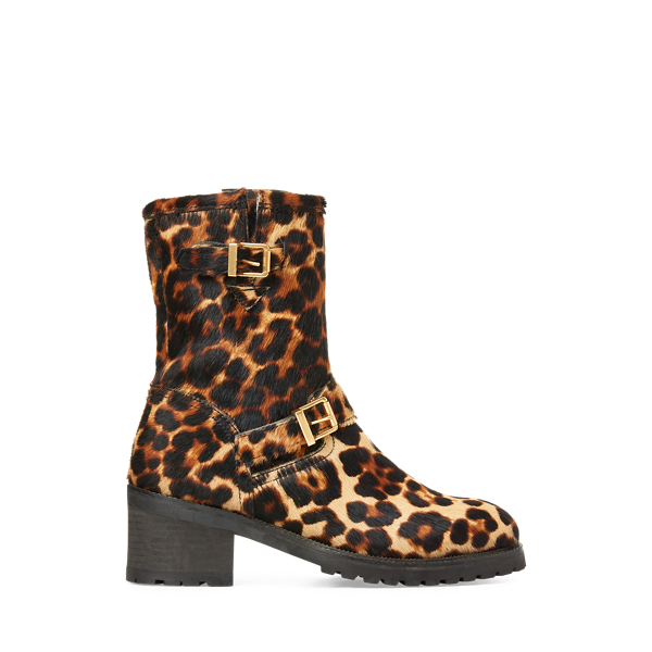 This season's moto boot is expertly crafted in Portugal from silky Italian haircalf with a leopard-print motif. The Payge features a versatile mid-height silhouette and is accented with buckles for urban appeal.