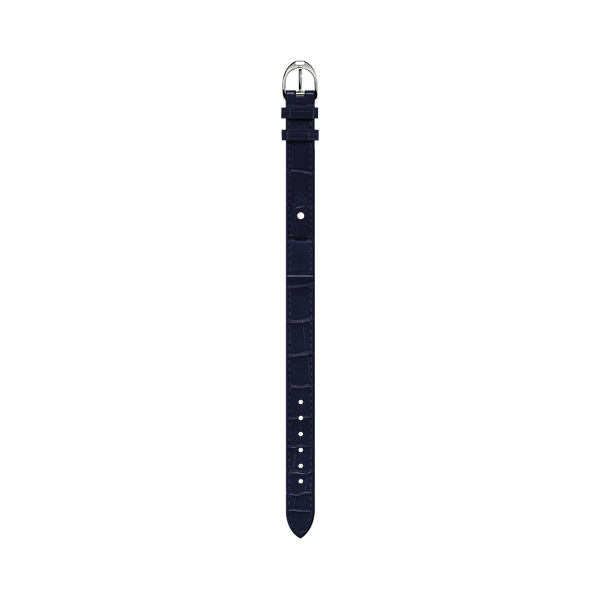 Designed to be interchangeable with our Petite Stirrup timepiece collection, this luxurious alligator strap is accented with a small steel tab and stud that secure the top of the watchcase to the strap, emulating a rider's saddle.