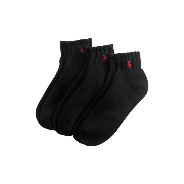 A three-pack of quarter-length socks is cut for soft comfort and sporty style.