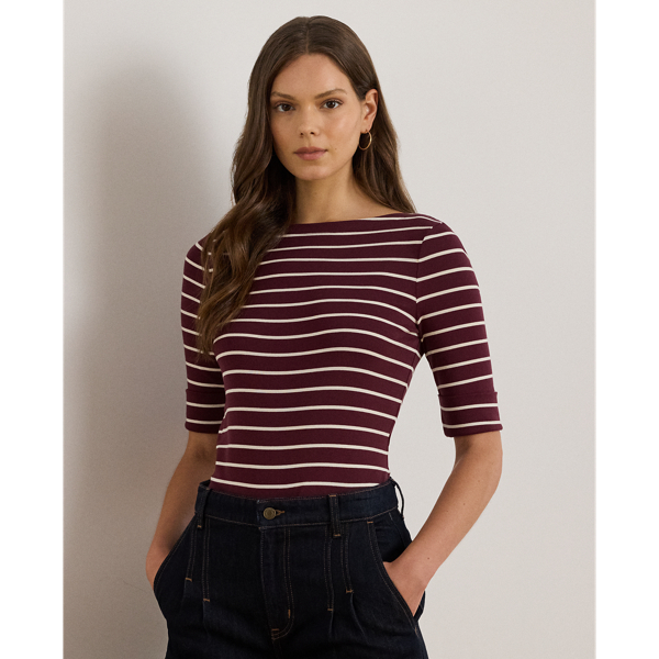 Yarn-dyed with classic horizontal stripes, this boatneck tee is made with breathable stretch cotton for a soft hand feel. An “LRL”-embroidered logo on the hem adds a subtle signature finish.
