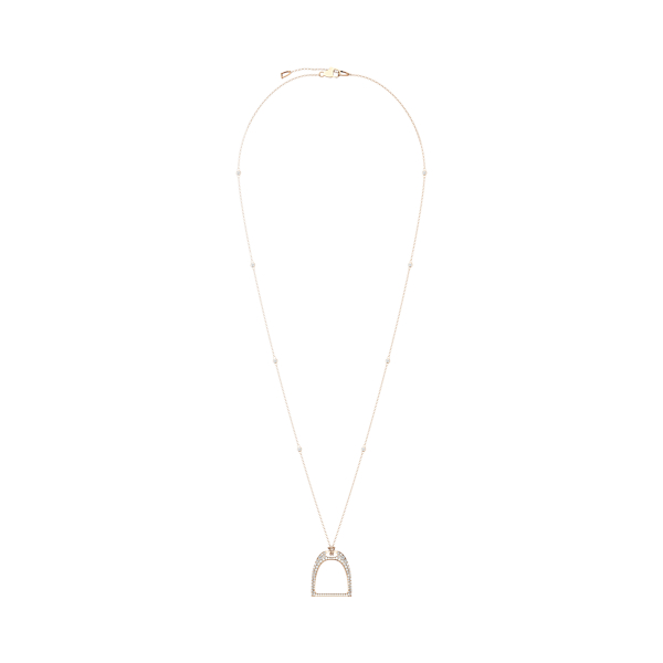 Incarnant le goût de Ralph Lauren pour le style équestre, ce collier est orné d'un étrier en or rose 18 carats pavé de diamants et joliment disposé sur une chaîne assortie. Cet article de fabrication italienne est élégamment présenté dans notre coffret en cuir gaufré façon crocodile.