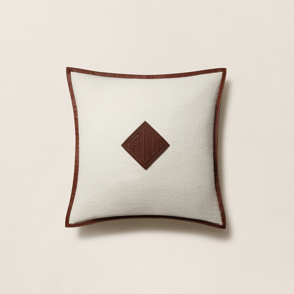 Ce coussin en lin souple est rehaussé d'un patch brodé en cuir de mouton nappa arborant le monogramme distinctif de Ralph Lauren devant.