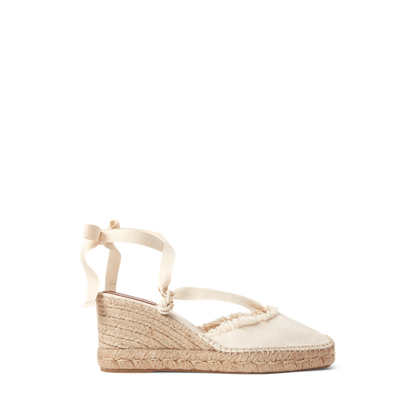 - Talon compensé en toile de jute tressée.
