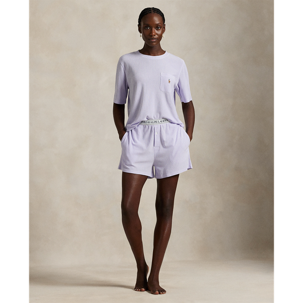 Pyjama rayé haut et short en maille
